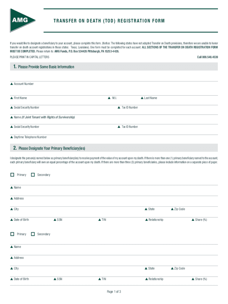 T R A N S F E R O N D E AT H (T O D) R E G I S T R AT I O N F O R MIF you would like to designate a beneficiary to your account, please complete this form. (Notice: The following states have not adopted