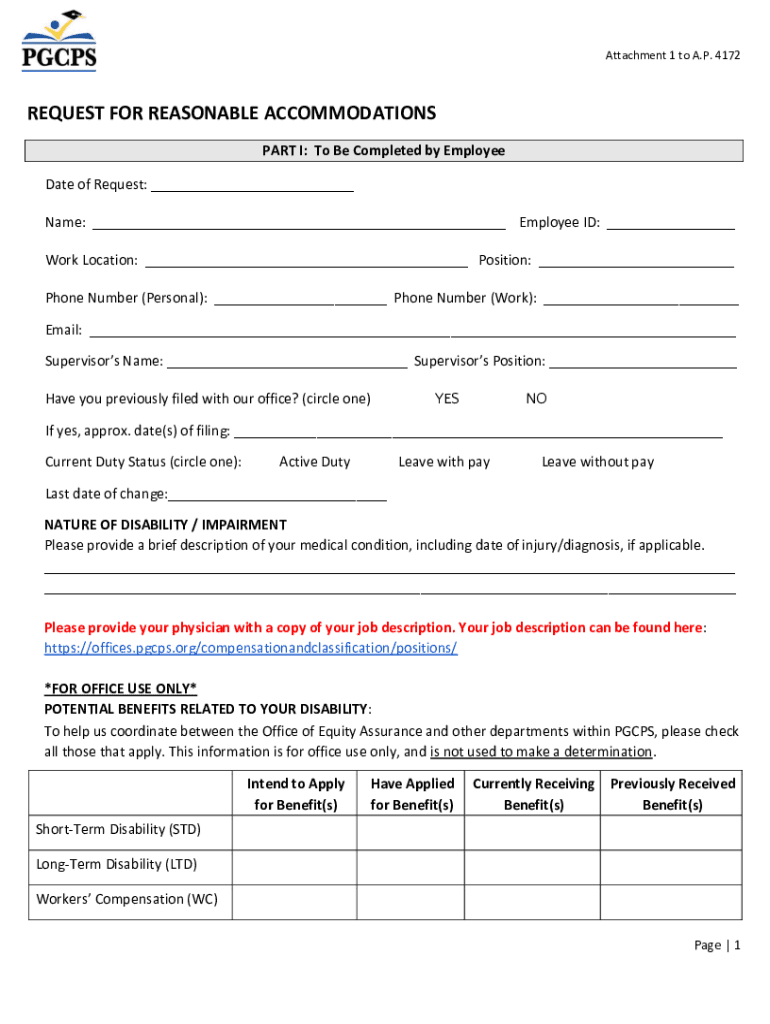 Attachment 1 to A.P. 4172REQUEST FOR REASONABLE ACCOMMODATIONS