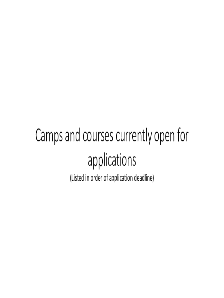 (Listed in order of application deadline)Courses and camps to look out for
