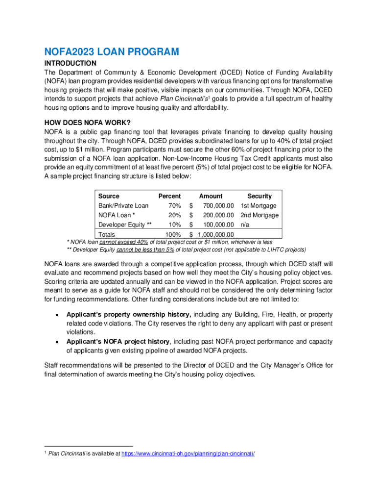 NOFA2023 LOAN PROGRAM INTRODUCTION The Department of Community & Economic Development (DIED) Notice of Funding Availability (NOVA) loan program provides residential developers with various financing