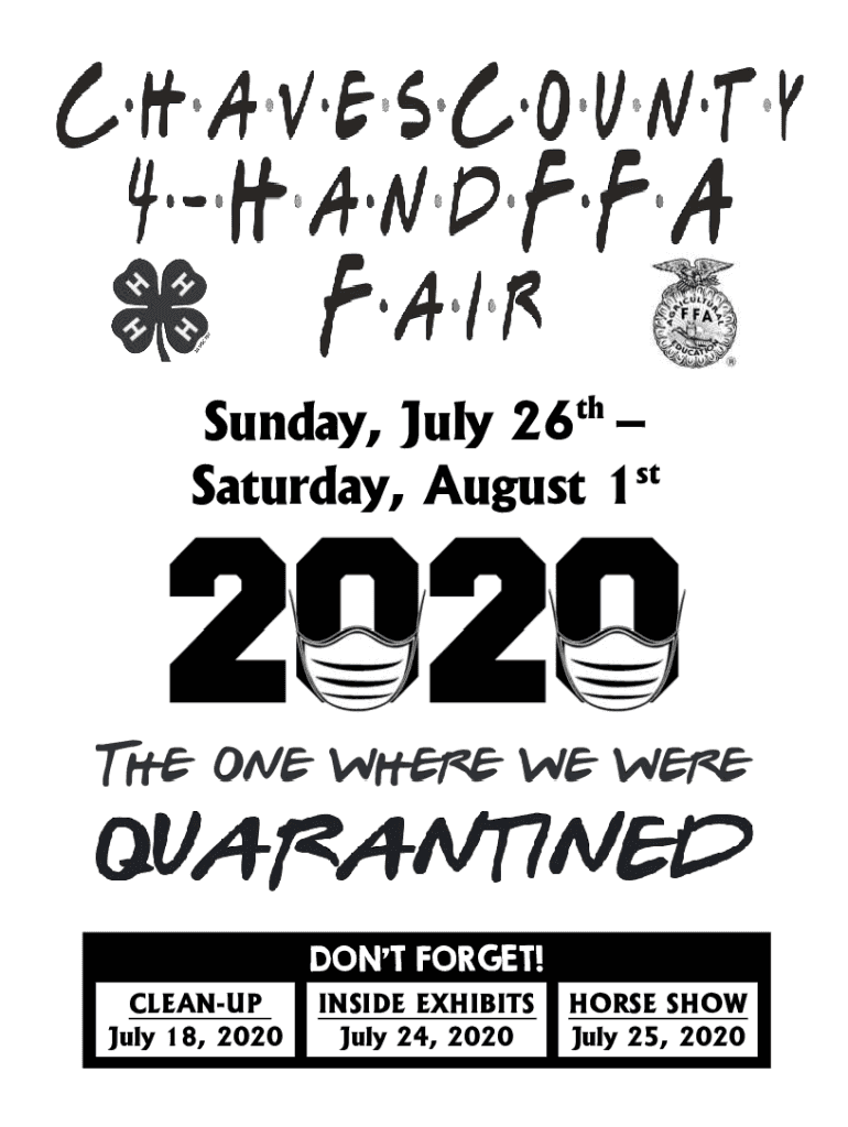 The Sunday, July 26 st Saturday, August 1DONT FORGET! CLEANUP July 18, 2020INSIDE EXHIBITS July 24, 2020HORSE SHOW July 25, 2020Chaves County 4H & FFA Fair 2020Table of Contents EventPageSchedule