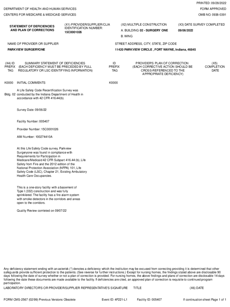 PRINTED: 09/28/2022 DEPARTMENT OF HEALTH AND HUMAN SERVICESFORM APPROVEDCENTERS FOR MEDICARE & MEDICAID SERVICES OMB NO. 09380391STATEMENT OF DEFICIENCIES AND PLAN OF CORRECTIONS(X1) PROVIDER/SUPPLIER/CIA