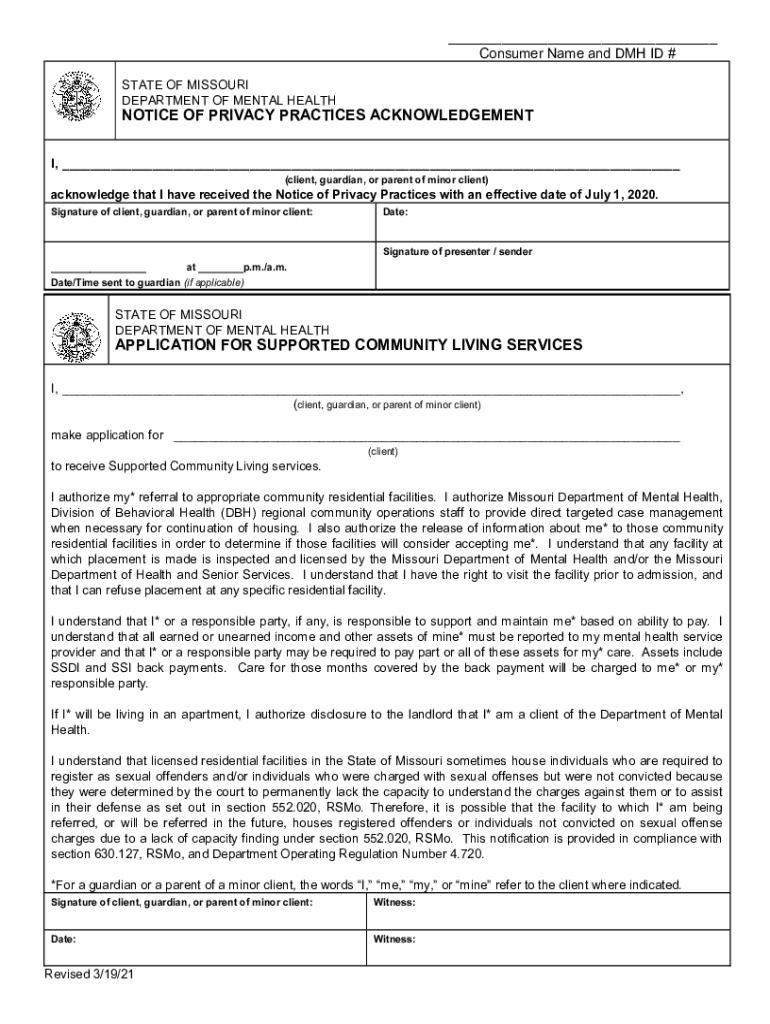___ Consumer Name and DM HID # STATE OF MISSOURI DEPARTMENT OF MENTAL HEALTHNOTICE OF PRIVACY PRACTICES ACKNOWLEDGEMENT I, ___ (client, guardian, or parent of minor client)acknowledge that I have