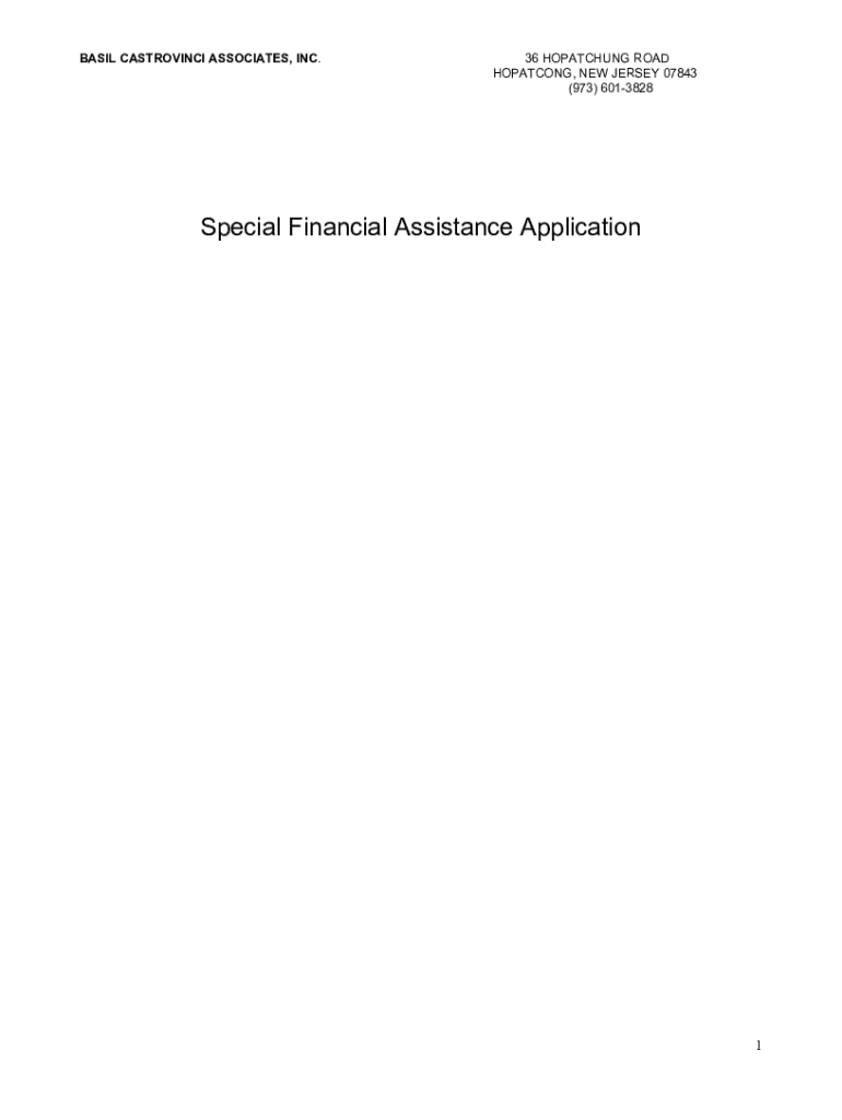 BASIL CASTROVINCI ASSOCIATES, INC.36 HATCHING ROAD HOPATCONG, NEW JERSEY 07843 (973) 6013828Special Financial Assistance Application1BASIL CASTROVINCI ASSOCIATES, INC.36 HATCHING ROAD HOPATCONG, NEW