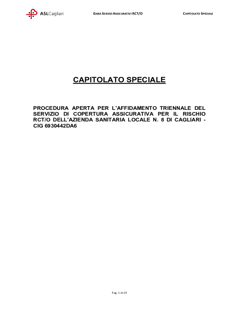 GARY SERVICE ASSICURATIVI ACT/CAPITULATE SPECIALECAPITOLATO SPECIALEPROCEDURA APE RTA PER L\'AFFIDAMENTO TRIENNIAL DEL SERVILLO DI APERTURE ASSICURATIVA PER IL RICHIE ACT/O DELL\'AGENDA SANITARIAN