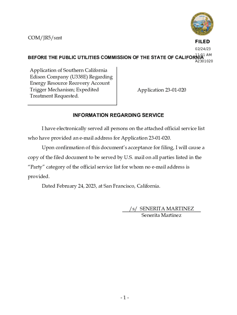 Get the free COM/JR5/smt Application of Southern California Edison ... - docs cpuc ca