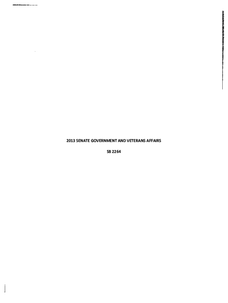 2013 SENATE GOVERNMENT AND VETERANS AFFAIRS SB 22642013 SENATE STANDING COMMITTEE MINUTES Senate Government and Veterans Affairs Committee Missouri River Room, State Capitols 2264 02/07/2013 Job Numbers