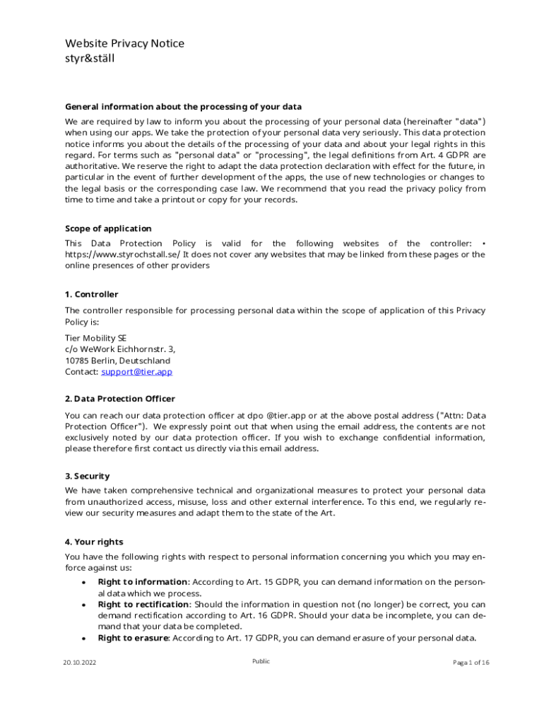 Website Privacy Notice styr&stllGeneral information about the processing of your data We are required by law to inform you about the processing of your personal data (hereinafter \” data\”) when