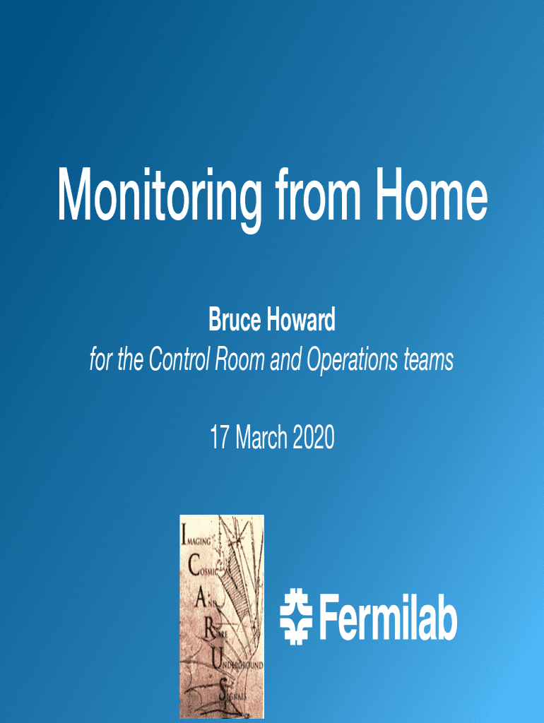 Monitoring from Home Bruce Howard for the Control Room and Operations teams 17 March 2020Shifts for ICARUS: very quick summary Until now, we've had a pretty smooth operation with both Fermi lab local