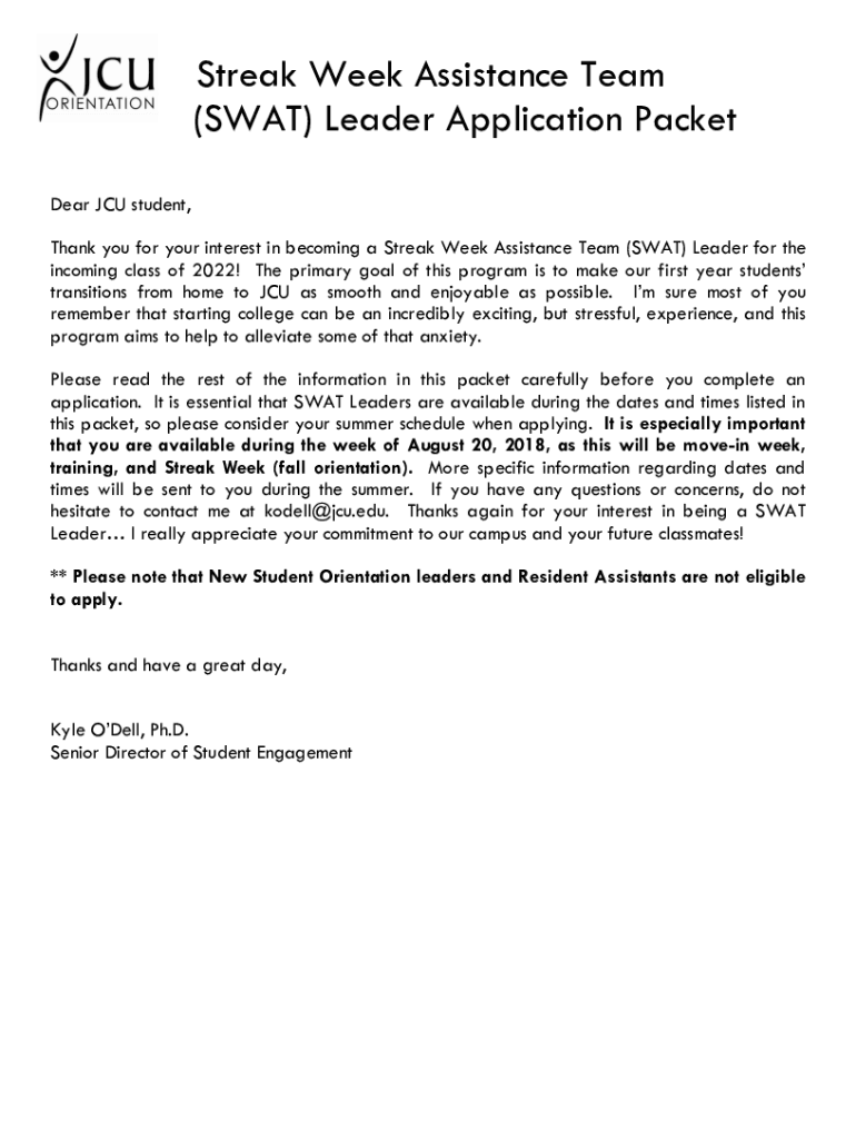 Get the free Streak Week Assistance Team (SWAT) Leader Application ... - webmedia jcu
