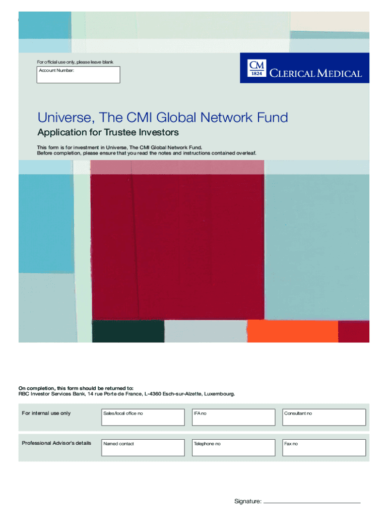 Universe, The CMI Global Network Fund (Trustee Investors)For official use only, please leave blank Account Number:Universe, The CMI Global Network Fund Application for Trustee Investors This form
