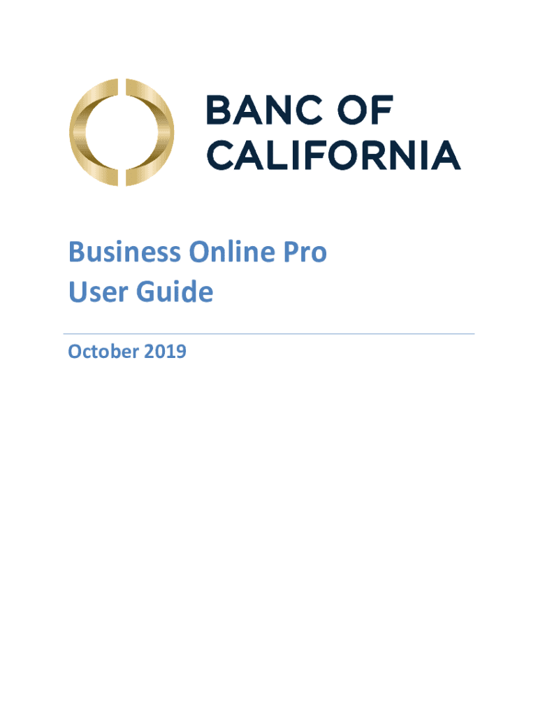 Business Online Pro User Guide October 2019Business Online Portable of Contents Client Company and User Administration ....................................................................................................