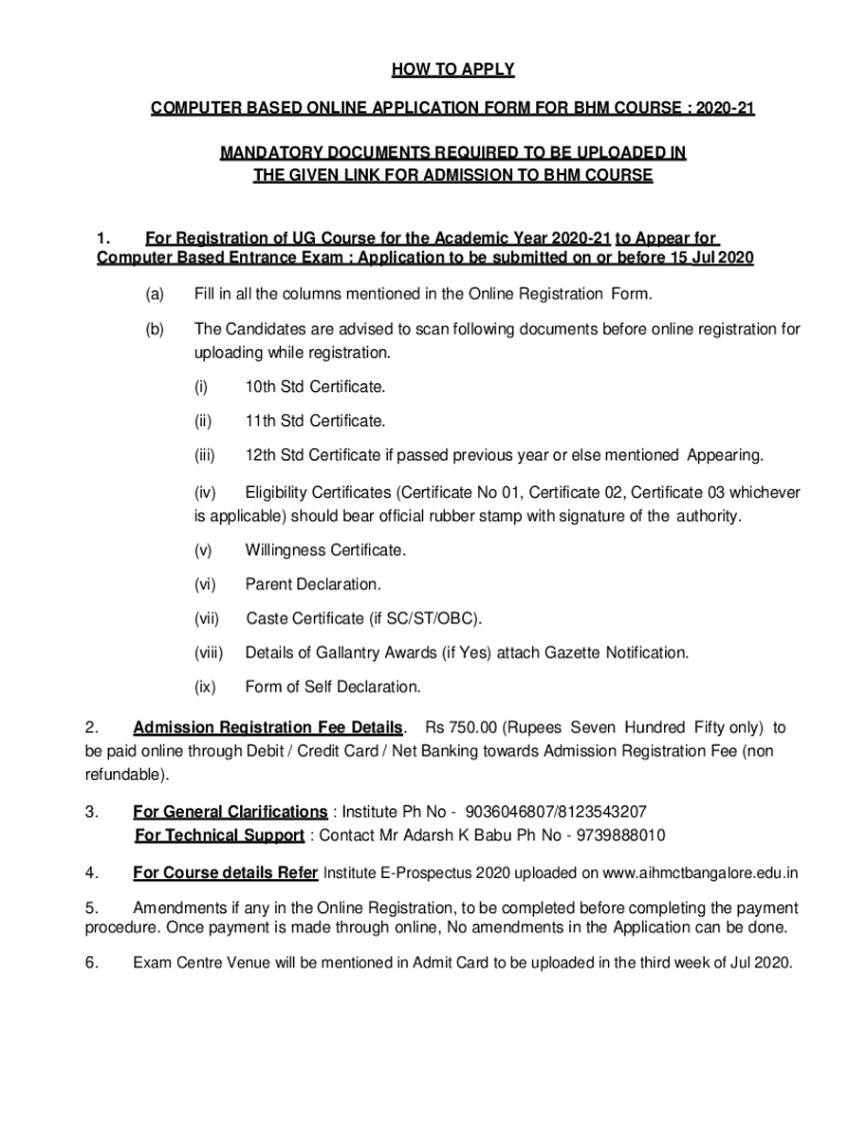 HOW TO APPLY COMPUTER BASED ONLINE APPLICATION FORM FOR BHM COURSE : 202021 MANDATORY DOCUMENTS REQUIRED TO BE UPLOADED IN THE GIVEN LINK FOR ADMISSION TO BHM COURSE1. For Registration of UG Course