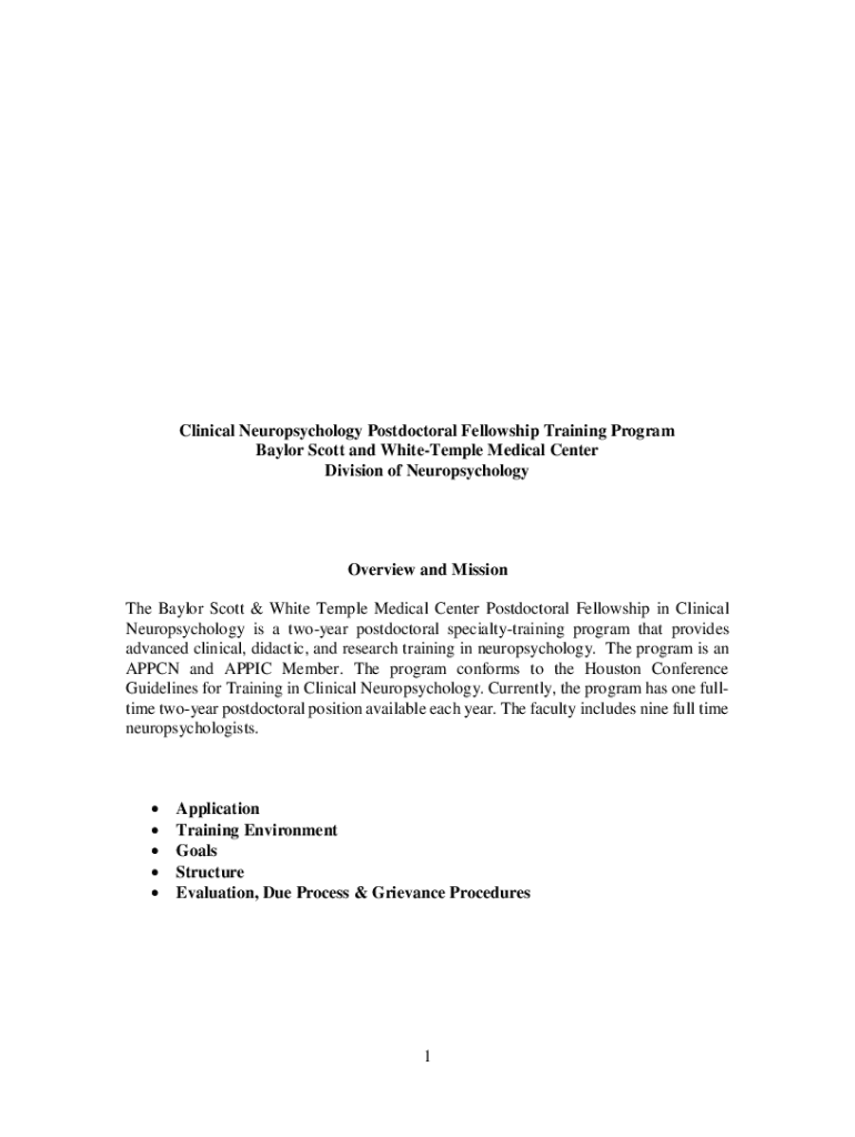 Clinical Neuropsychology Postdoctoral Fellowship Training Program Baylor Scott and White Temple Medical Center Division of NeuropsychologyOverview and Mission The Baylor Scott & White Temple Medical