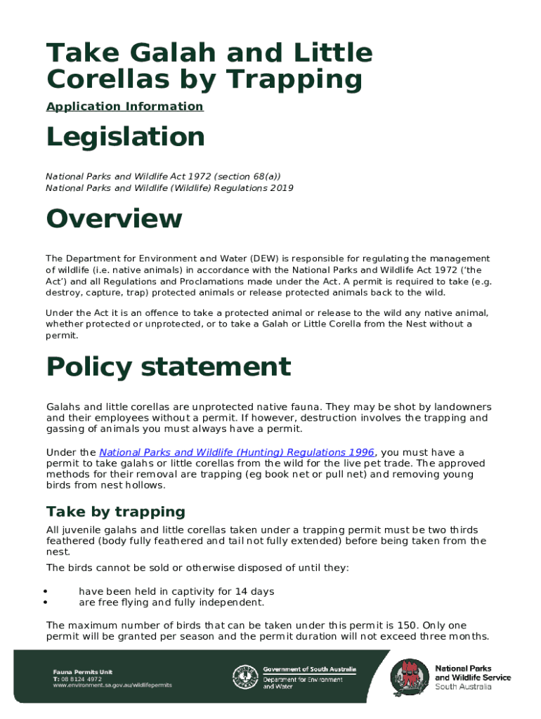 Frequently asked questions about the form 95664 NPWSA Application for Permit to Take Protected Animals from the Wild