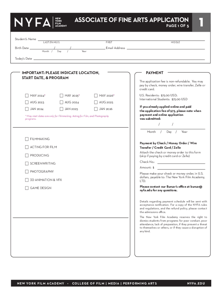 ASSOCIATE OF FINE ARTS APPLICATION