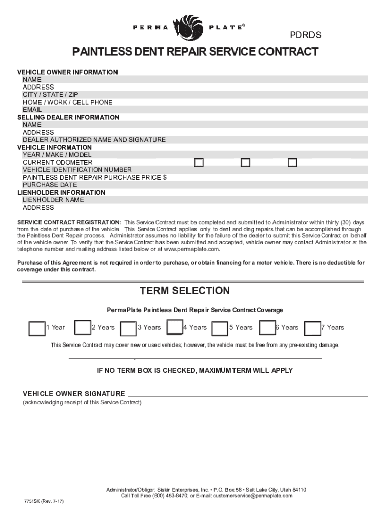 PDRDSPAINTLESS DENT REPAIR SERVICE CONTRACT
