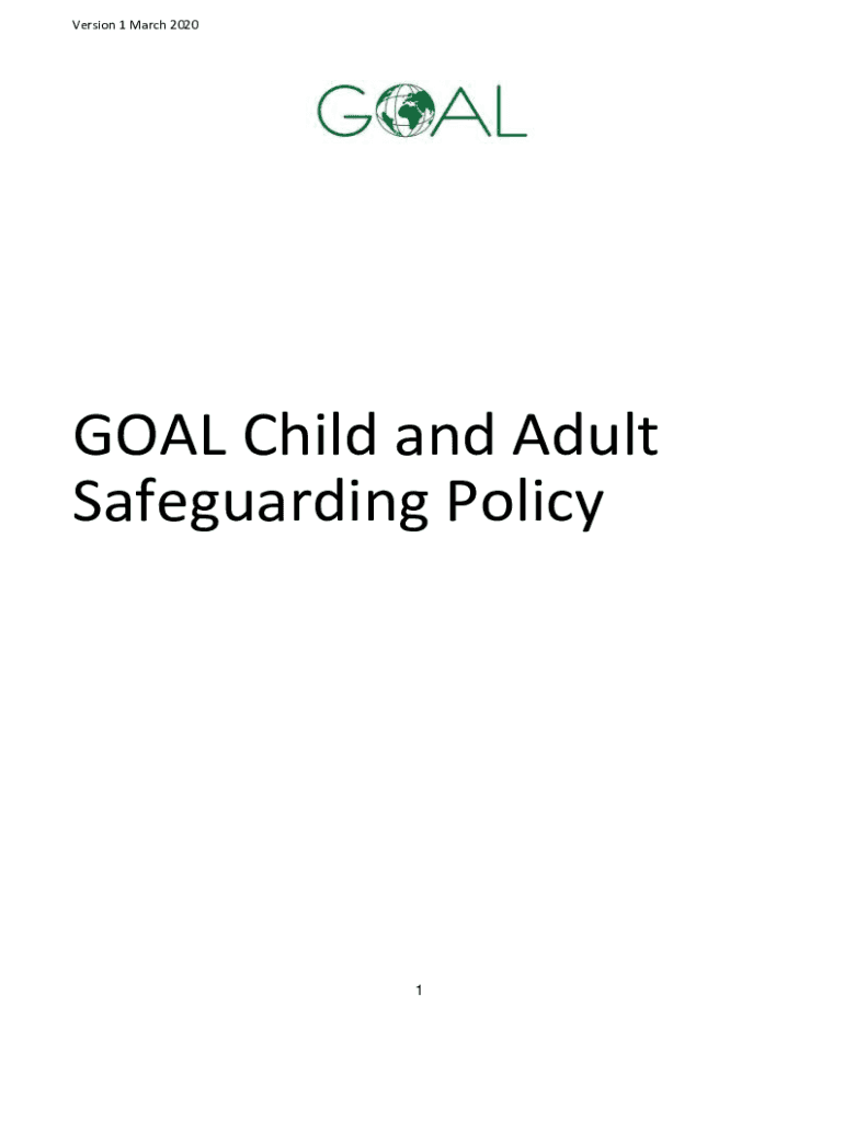Version 1 March 2020GOAL Child and Adult Safeguarding Policy1Version 1 March 2020GOAL Child and Adult Safeguarding Policy Clients:All GOAL staff, including all GOAL Head Office and Field staff, all