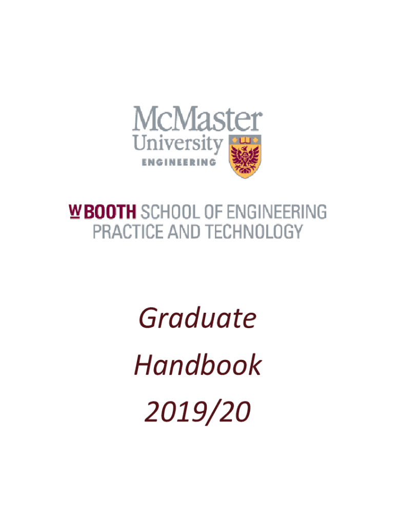 Graduate from Handbook 2019/20Table of Contents DATES SGS Sessional Dates INTRODUCTION WHO'S WHO in the W Booth School of Engineering Practice and Technology STAGE 1Registration with the School of