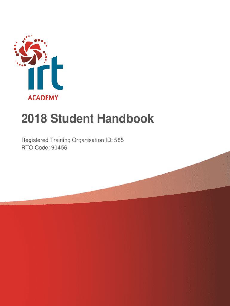 2018 Student Handbook Registered Training Organization ID: 585 RTO Code: 90456IRT Academy 2018 Student HandbookWelcome to IRT Academy I would like to welcome you to IRT Academy and trust that you