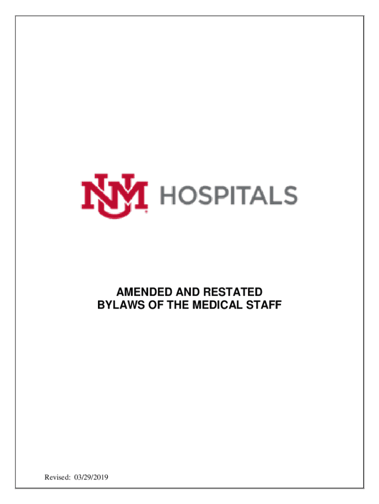 AMENDED AND RESTATED BYLAWS OF THE MEDICAL STAFFRevised: 03/29/2019University of New Mexico Hospitals AMENDED AND RESTATED BYLAWS OF THE MEDICAL STAFF Table of Contents Preamble .................................................................................................................
