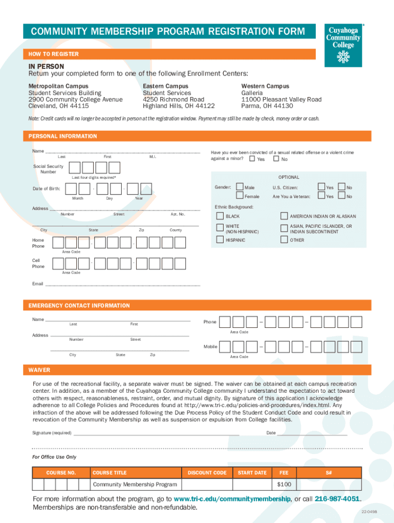 COMMUNITY MEMBERSHIP PROGRAM REGISTRATION FORM HOW To register PERSON Return your completed form to one of the following Enrollment Centers: Metropolitan CampusStudent Services Building2900 Community