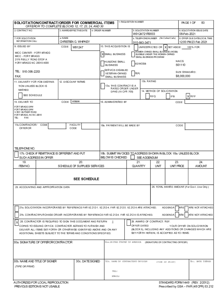 SOLICITATION/CONTRACT/ORDER FOR COMMERCIAL ITEMS1. REQUISITION NUMBERING 1 OF83OFFEROR TO COMPLETE BLOCKS 12, 17, 23, 24, AND 30 2. CONTRACT NO.3. AWARD/EFFECTIVE DATE7. FOR SOLICITATION INFORMATION