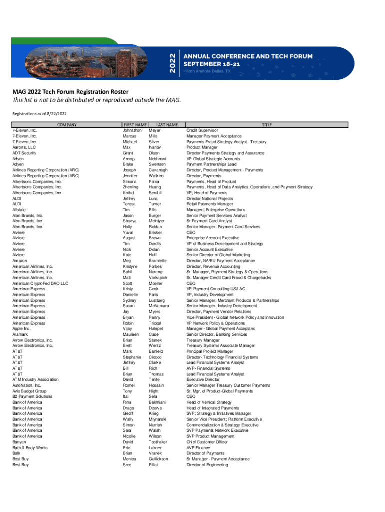 MAG 2022 Tech Forum Registration Roster