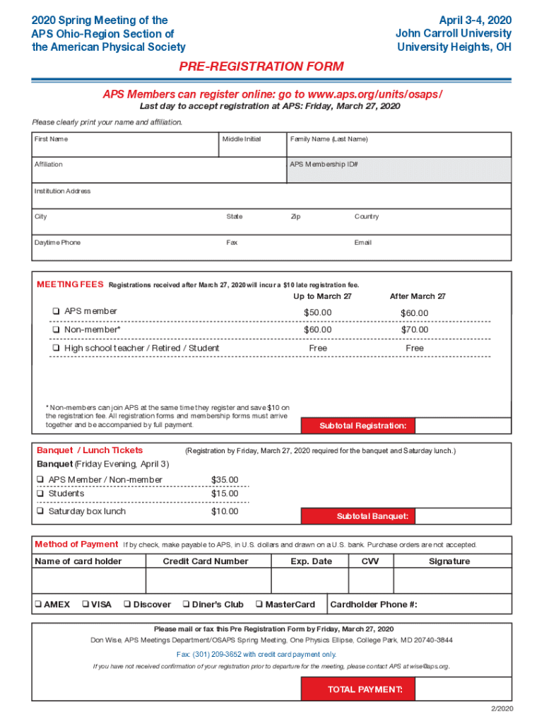 the American Physical SocietyPREREGISTRATION FORMATS Members can register online: go to www.aps.org/units/osaps/