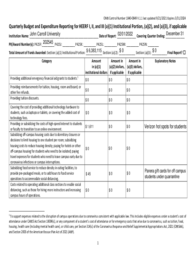 OMB Control Number 18400849 V.1.1 last updated 9/21/2021 Expires 3/31/2024QuarterlyBudgetandExpenditureReportingforHEERFI,II, Andrei(a)(1)Institutionalization, (a)(2), and(a)(3), inapplicable December