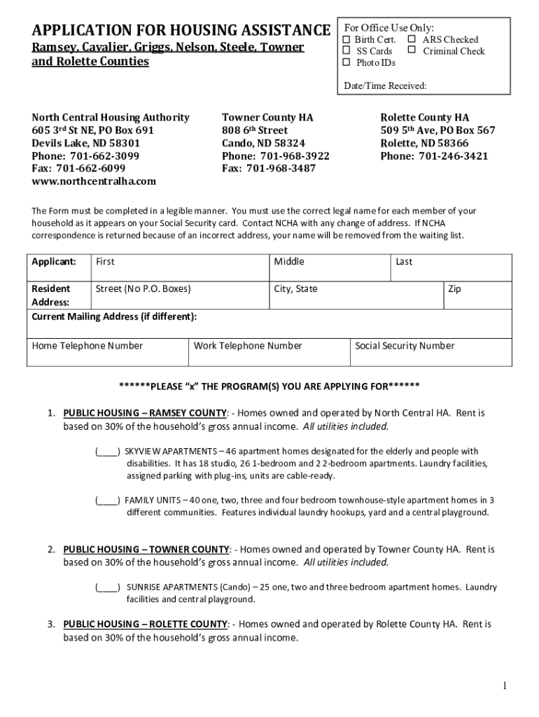 NORTH CENTRAL HOUSING AUTHORITY www.northcentralha.comMemo To: Applicants for HousingFrom: North Central Housing Authority RE:Applications and what is needed 1) Application needs to be fully completed.