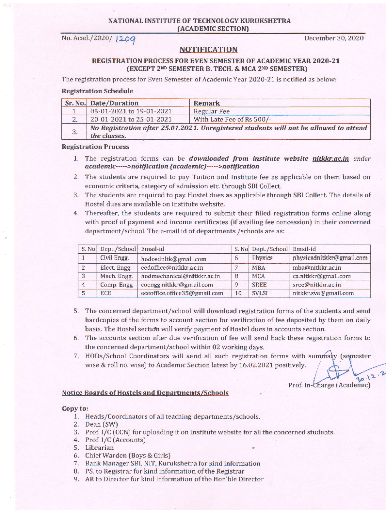 Get the free Notification-and-Registration-form-for-Even-Semester- ...