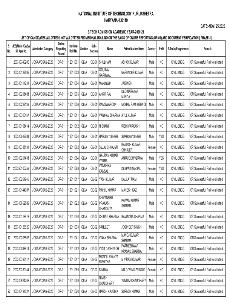 LIST OF CANDIDATES ALLOTTED / NOT ALLOTTED PROVISIONAL ROLL NO ON THE BASIS OF ONLINE
