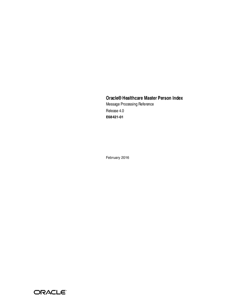 Get the free Oracle Healthcare Master Person Index Message Processing Reference. Oracle Healthcar...