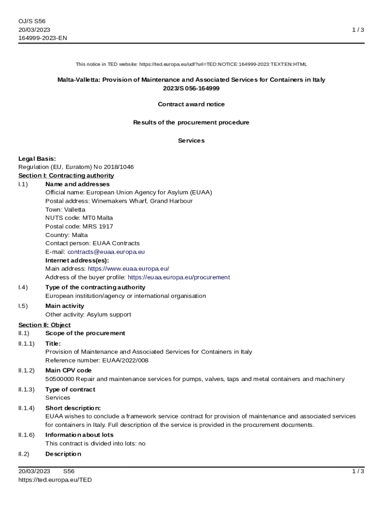 OJ/S S56 20/03/2023 1649992023EN1/3This notice in TED website: https://ted.europa.eu/udl?uriTED:NOTICE:1649992023:TEXT:EN:HTMLMaltaValletta: Provision of Maintenance and Associated Services for Containers