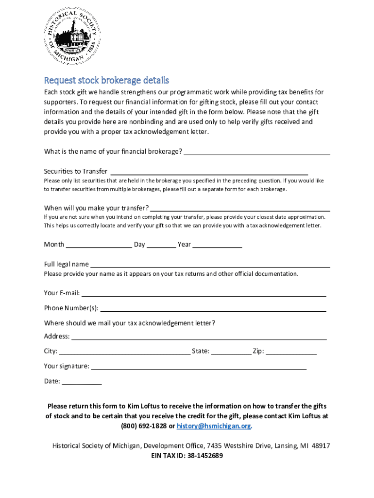 Request Stock Brokerage Details is not the form you're looking for?Search for another form here.