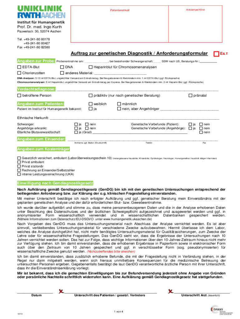 humangenetik@ukaachen.deAuftrag our genetischen Diagnostic