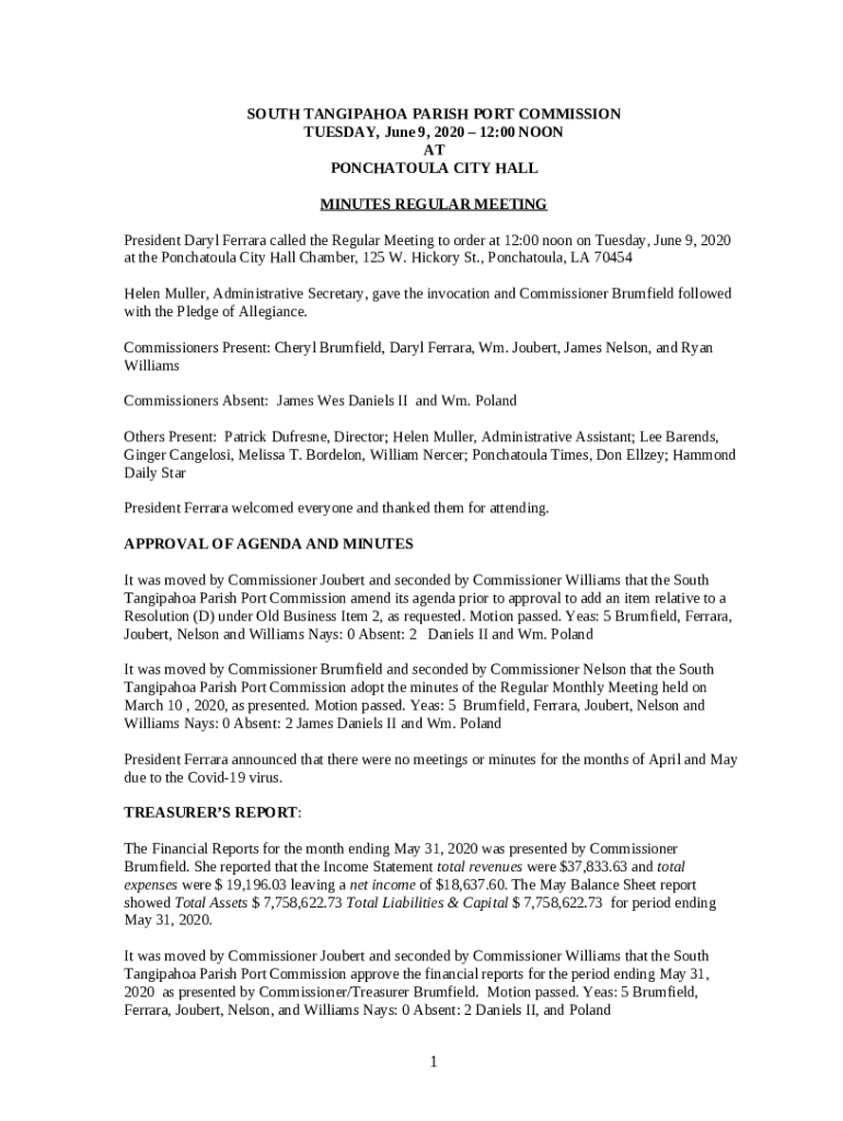 SOUTH TANGIPAHOAPARISH PORT COMMISSION word template: frequently asked questions