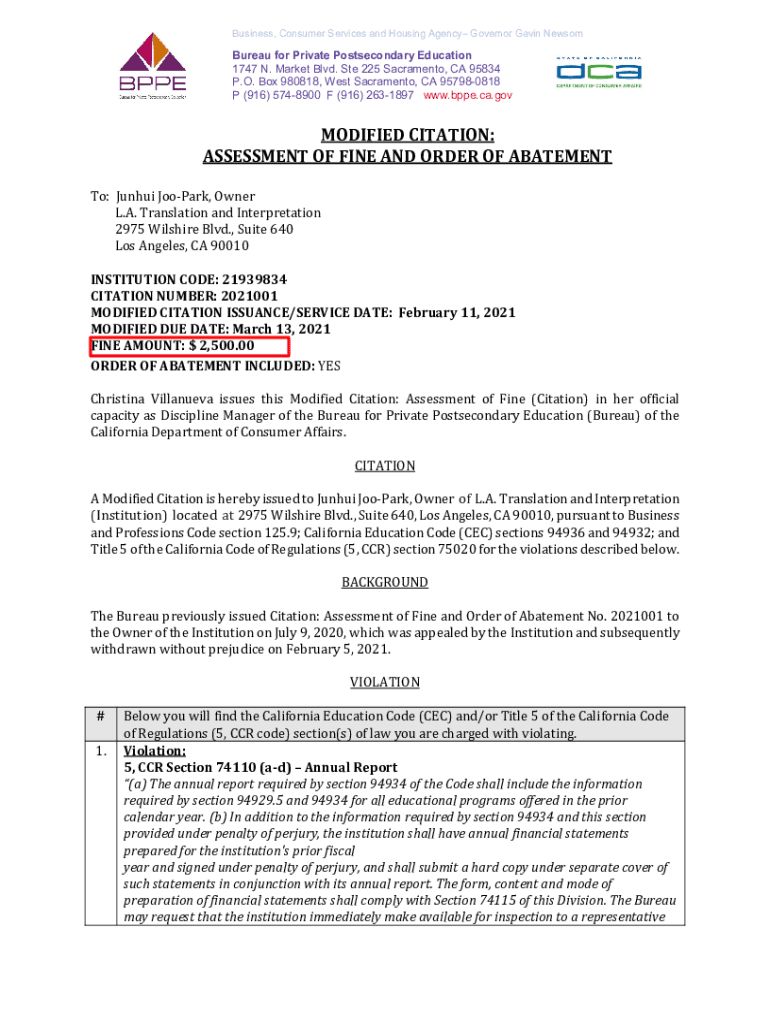 Get the free Bureau for Private Postsecondary Education - L.A. Translation and Interpretation - M...