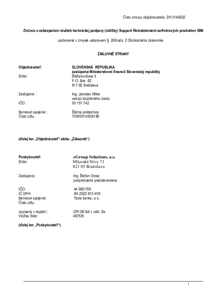 Get the free Zmluva o zabezpeen sluieb technickej podpory (drby) Support Reinstatement softvrovch...
