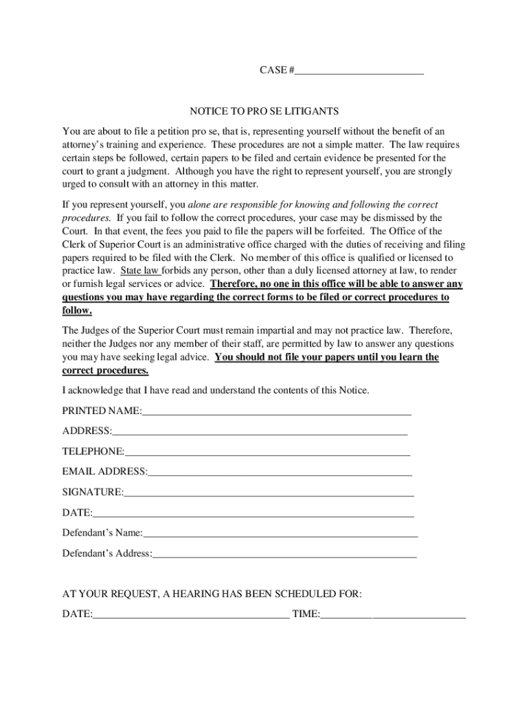 Get the free NOTICE TO PRO SE LITIGANTS You are about to file a petition pro ...
