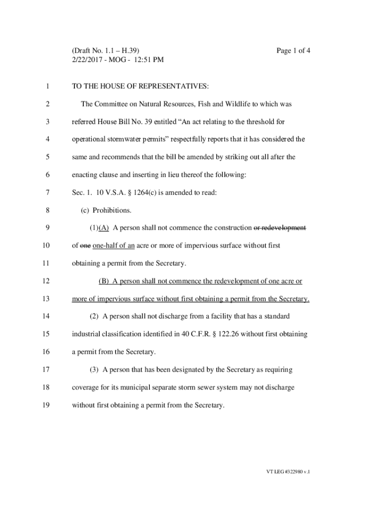(Draft No. 1.1 H.39) 2/22/2017 DOG 12:51 PM1 2Page 1 of 4TO THE HOUSE OF REPRESENTATIVES: The Committee on Natural Resources, Fish and Wildlife to which was3referred House Bill No. 39 entitled An