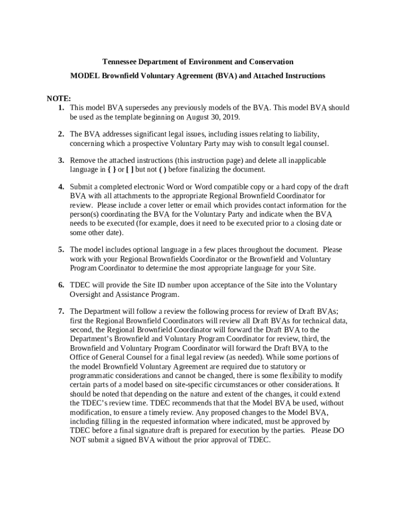 Brownfield Voluntary Agreement Template word template: frequently asked questions