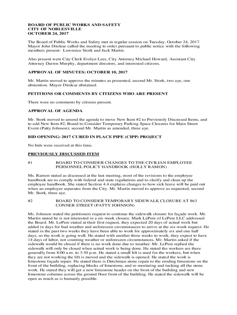 Get the free The Board of Public Works and Safety met in regular session on Tuesday, October 24, ...