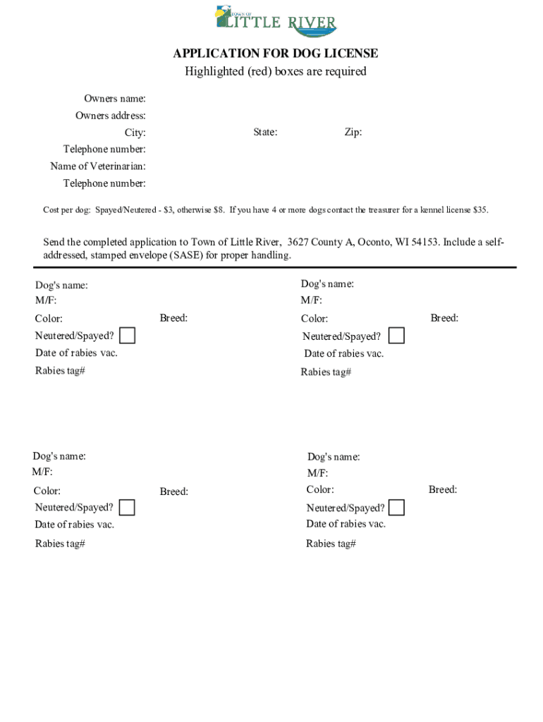 Get the free APPLICATION FOR DOG LICENSE Highlighted (red) boxes are ...