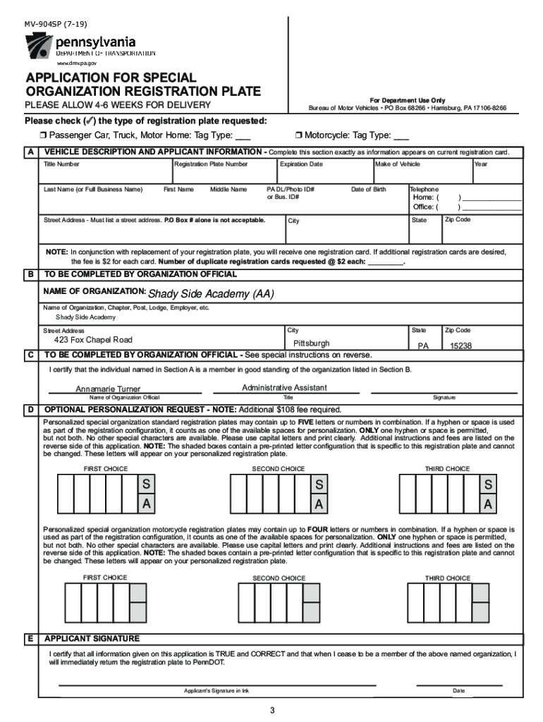 www.dmv.pa.govPLEASE ALLOW 46 WEEKS FOR Delivery Department Use Only