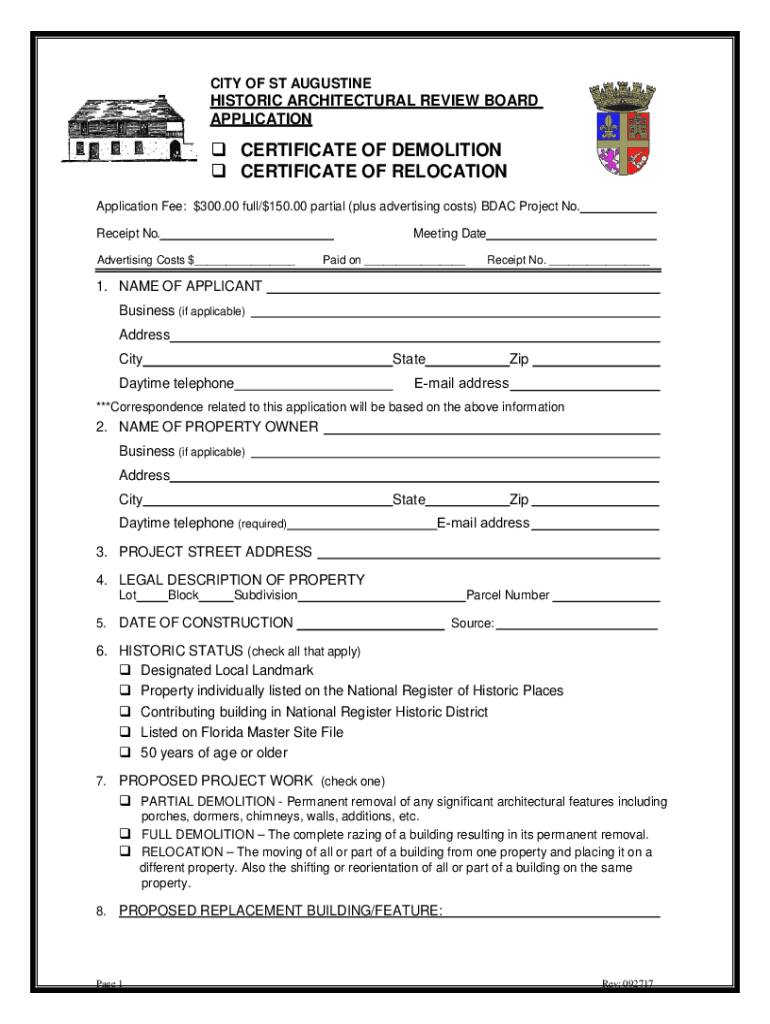Get the free Certificate of Demolition or Relocation Application (PDF)