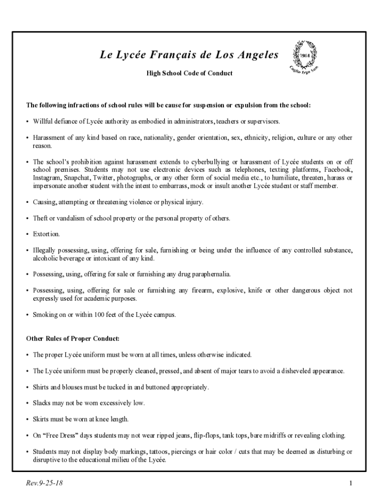 Le Lace Francis de Los Angeles High School Code of Conductive following infractions of school rules will because for suspension or expulsion from the school: Willful defiance of Lace authority as