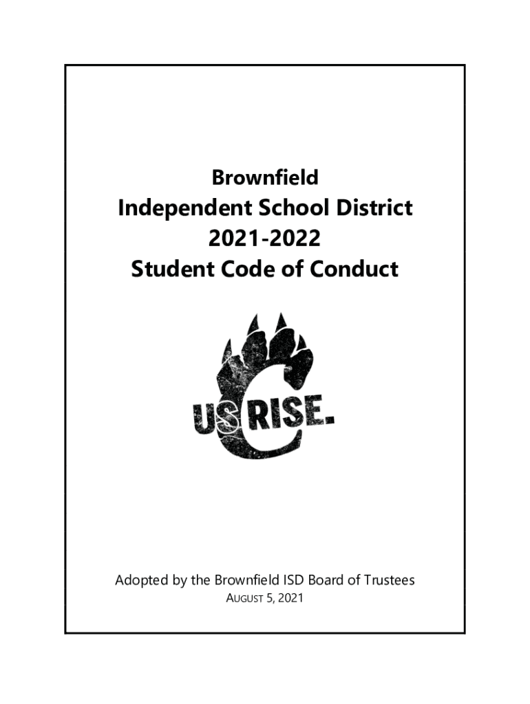 BrownfieldIndependent School District 20212022 Student Code of ConductAdopted by the Brownfield ISD Board of Trustees AUGUST 5, 2021Table of Contents Acknowledgement ...........................................................................................................................3