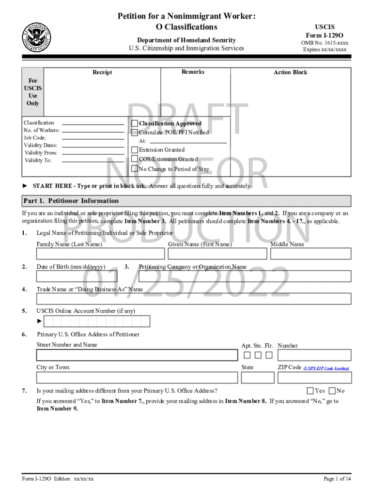 Get the free I-129O, Petition for a Nonimmigrant Worker: O Classifications